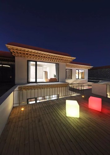 为了保护传统建筑原有的风格,设计师还按照当地的习俗,为这个房子的大门和窗口以及过梁处增添了藏式装饰。